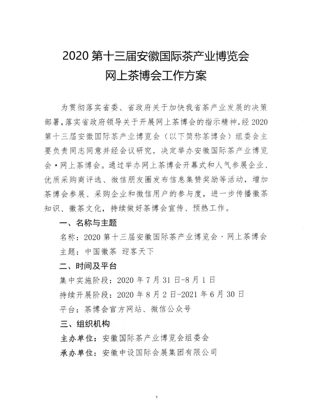 2020第十三届安徽国际茶产业博览会•网上茶博会工作方案的通知